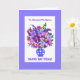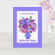Una tarjeta de cumpleaños para que puedas personalizar, con un ramo de flores rosas, azules y violetas, de un collage de papel pintado a mano de Judy Adamson. El nombre del destinatario, el mensaje de la portada y el mensaje interno se pueden personalizar y esta tarjeta se puede usar en muchas ocasiones además de los cumpleaños.