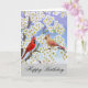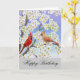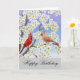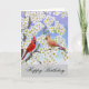 Diseño original de arte fino de un cardenal macho y hembra en un manzano por la diseñadora Carolyn McFann de Two Purring Cats Studio en una tarjeta de cumpleaños de personalizable para los aficionados a las aves.