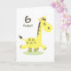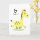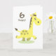 Tarjeta de cumpleaños personalizada que ofrece un ilustracion de una jirafa. La edad y el saludo interno son adaptables.