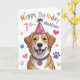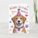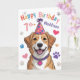 Esta linda tarjeta de cumpleaños número 7 para un perro incluye un gráfico de un perro lindo con un sombrero de cumpleaños. En la parte delantera, puedes personalizarla agregando el nombre de la persona que recibe esta tarjeta de cumpleaños. Puedes cambiar el año si lo deseas (por ejemplo, en lugar de cumpleaños "3er" podría decir cumpleaños "2do"). El mensaje divertido pero lindo en el interior de esta tarjeta dice "¡Espero que tu cumpleaños sea absolutamente increíble!". ¡Disfruta de esta tarjeta de cumpleaños de cachorro rosa y morado!