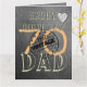 Idea de tarjeta de felicitación de cumpleaños número 70 personalizada con tema de cuero para un papá especial. Crea una tarjeta de cumpleaños única para papá. Se puede personalizar para cualquier año de cumpleaños