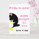 Tarjeta de cumpleaños de pingüino para chica joven. ¡Peek-a-boo! Feliz cumpleaños para ti.