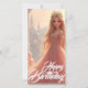 Tarjeta mágica de cumpleaños con una princesa en un vestido rosa, perfecta para chicas y aficionados a los cuentos de hadas y la elegancia.