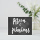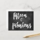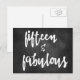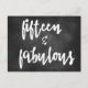 NewParkLane - Tarjeta postal, con la divertida cita 'Quince y fabulosa' en una tipografía de letra cursiva de moda, sobre un fondo de pizarra.