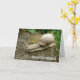 Gran fotografía de cierre de un caracol, con el texto de muestra en lectura delantera, Lo siento, soy tan lento. El saludo interno dice: Feliz cumpleaños tardío. Personalizar esto para leer lo que quieras.