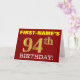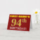 ¡Las características del este del cumpleaños de felicitación diseño de la tarjeta un mensaje tienen gusto "del 94.o CUMPLEAÑOS de FIRST-NAME! ", con "el 94.o" teniendo un falso/una imitación oro-como aspecto del color. El nombre del beneficiario en el frente puede ser modificado para requisitos particulares, y el fondo delantero se colorea rojo. También ofrece un mensaje personalizado del saludo del cumpleaños en el interior. Una tarjeta de felicitación del cumpleaños como esto se podía quizás dar alguien en conmemoración de su noventa cuartos cumpleaños. [~Z0000184]