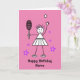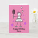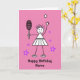 Tarjeta de cumpleaños rosa para jugadora de tenis