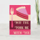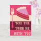 Esta dulce y divertida tarjeta de cumpleaños presenta el mensaje 'Que el tenedor esté contigo' en la parte delantera y cuenta con una ilustración audaz de estilo moderno retro de una deliciosa porción de pastel y un tenedor en tonos de rosa, burdeos y crema. Deje el saludo interior como está, o use el campo de plantilla para crear su propio mensaje personalizado en el interior de esta tarjeta de cumpleaños.