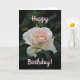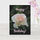 Mi fotografía original de una rosa rosada bonito en un jardín aparece en esta tarjeta de cumpleaños floral. El frente dice "¡Feliz cumpleaños!" y dentro dice "¡Que tu vida esté llena de amor y paz hoy y siempre!" para un dulce saludo de cumpleaños.