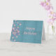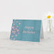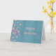 Flores rosadas y púrpuras lindas con una mancha del oro en un fondo azul que tiene una mirada de papel reciclada. Esta tarjeta de felicitación bonita es fácil de modificar para requisitos particulares para cualquier ocasión. El interior es en blanco para su propio mensaje personal.