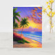 Tarjeta tropical de cumpleaños con una espectacular puesta de sol, palmeras y olas oceánicas. Personaliza con tu propio dicho si quieres.