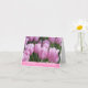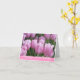 La tarjeta de cumpleaños se muestra con una foto impresa de tulipanes rosados de bonito. Mensaje dentro Personalizar este artículo o compra tal como está. Imagen con licencia