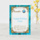 Diseño de una tarjeta creativa con un color turquesa azul dorado y un tema de diseño Damask con una variedad de imágenes, formas, patrones, estilos y fuentes personalizados en esta tarjeta de bienvenida de cumpleaños "December Turquoise Birthstone". Este elegante y atractivo diseño se completa con letras de texto en personalizable en el frente y en el interior para que se adapte a su propio saludo especial de cumpleaños. ¡Qué manera perfecta de decir "Feliz cumpleaños" a alguien especial en tu vida este diciembre!