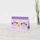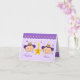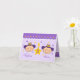 Diseño adorable de princesa para el segundo cumpleaños de gemelas que presenta a dos pequeñas princesas lindas con cabello púrpura y coronas doradas rodeadas de lunares. Un número 2 está en una estrella de vela de cumpleaños entre ellas. Borde ondulado púrpura. ¡Personalizable! Perfecto para el segundo cumpleaños de sus altezas. ¡Original de PinkInkArt!