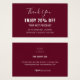Diseño moderno y elegante imprimió Tarjeta de Cupón de Descuento Simple y Moderno de Borgoña que puede ser personalizada con su texto. Haga clic en el botón "Personalizar" y utilice nuestra herramienta de diseño para modificar esta plantilla. Visita la tienda de Diseño de Arte Gráfico para ver otros productos que coincidan con este diseño.
