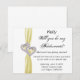 ¿Planeando una boda? Necesitas que tus amigos te tomen de la mano, te ayuden a organizar y te hagan lucir perfecta en tu día especial. Hacer la pregunta es fácil con esta tarjeta de ¿serás mi dama de honor?. Personaliza la tarjeta cambiando el texto en los campos proporcionados. Puedes cambiar el estilo de fuente, tamaño y color, tipo y estilo de papel, así como cambiar el color de fondo utilizando el botón Personalizar.