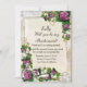 Tarjeta de dama de honor de encaje y hortensia púr