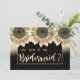 Tarjeta de dama de honor de oro, girasoles y brill