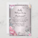 Tarjeta de dama de honor floral y mariposa rosa