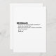 Celebra a tu dama de honor con una tarjeta que combina perfectamente el humor, la apreciación y el sentimiento sincero. Este diseño elegante de "Definición de Dama de Honor" destaca todo lo que la hace esencial en tu gran día: lealtad, risa, apoyo, guardar secretos y habilidades legendarias en la pista de baile, todo envuelto en un divertido formato de estilo diccionario.