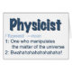 Los físicos son inteligentes. También pueden ser un poco, bueno, peligrosos. Celebra la locura con esta carta que define la profesión en términos de lo que pueden hacer (manipular la materia) y por lo que deben tener cuidado (risa malvada).