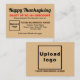 ¡Feliz Día de Acción de Gracias! Festividad para celebrar este noviembre para agradecer por las bendiciones que recibimos. También es una de las vacaciones publicitar su negocio o promocionar sus productos o servicios. Atraer a más clientes dándoles descuento, una de las estrategias de marketing para tener más clientes. Tarjeta de descuento por personalizable que puede utilizar para atraer a más clientes a fin de que compren sus productos o clientes para que les gusten sus servicios. Descubre la tarjeta con tu marca comercial como material de marketing que también puedes usar para crear conciencia de marca. Los colores de diseño son textos negros, marrones oscuros y rojos sobre fondo marrón claro. Para personalizar de esta tarjeta de descuento, especifique el porcentaje de descuento que ofrecerá y la fecha de validez. Sube también el logotipo de tu empresa, escribe tu nombre de negocio, dirección y número de teléfono. Por favor, compruebe la apariencia en los lados delantero y trasero después de cargar el logotipo y escribir textos. Si la apariencia le resulta agradable, puede realizar su pedido ahora. Si necesita cambiar el tamaño y mover el logotipo y los textos para que encajen en esta tarjeta de descuento, por favor cambie la herramienta de diseño. También puede cambiar el color de fondo, el color de fuente y el estilo de fuente en la herramienta de diseño. ¡Feliz Día de Acción de Gracias! Te deseo más ventas esta fiesta.