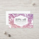Coordina con la plantilla de la tarjeta de visita Paletas de Purpurina púrpura y rosa tropical a las 12.00 horas. Las siluetas Purpurinoso de palmeras crean un telón de fondo tropical en este moderno y sofisticado patrón de tarjetas de cupón descuento. Ideal para bronceados, bronceado en spray, promociones de verano, ropa de playa, tiendas y más. © 1201AM CREATIVE