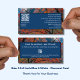 Catch The Next Leaf - Tarjeta de descuento para el otoño estacional en formato paisaje con hojas de otoño coloridas que cubren el fondo de los árboles. Forma parte de la colección Blue Business Card Designs & Marketing Items. ・ Diseño frontal: La parte delantera muestra una frase pegadiza que presenta el descuento de otoño "Atrapa la siguiente hoja y XX% de descuento", un lema estacional "Un poco más, por la próxima vez que te vayas", y un logotipo. Debajo de los términos: Muestra esta tarjeta para recibir un descuento del XX%. Válido hasta XX.XX.20XX. ● Diseño posterior: En la parte posterior, el lado izquierdo presenta un código QR con el "Scan Specials!" de llamada a la acción para una exploración sencilla. Debajo hay un portapuestos para el ID de seguimiento. Dejar en blanco si no es necesario. En el lado derecho se muestran detalles de contacto físicos y virtuales. Debajo de la invitación a "¡Conéctate y explora en Facebook!", la etiqueta y la cuenta social. Para obtener más ideas sobre el uso estratégico de "Gracias tarjetas de visita" para aumentar la retención de clientes, visite www.KBMD3signs.com/thank-you-business-cards/. Para obtener ayuda sobre personalización o diseños personalizados, póngase en contacto con info@KBMD3signs.com.