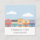 Modern small business discount cards with a row of cute pastel buildings. Use the template to add your personalized message.