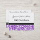 Vale adaptable del salón, del balneario o del peluquero en la púrpura brillante elegante y bonita, modelo floral clásico blanco y negro del damasco. Personalizar con su propio texto para un vale personalizado para su negocio. Éntrenos en contacto con para pedir un color de encargo o productos a juego para su compañía.