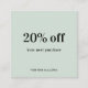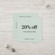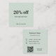 Sage green Background, texto negro On front: Añadir descuento. Atrás: Personaliza y agrega tu nombre, dirección, número de teléfono, correo, dirección del sitio web, código qr a tu sitio web o cuenta de medios sociales.