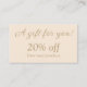 Tarjeta de descuento minimalista que le dará a su embalaje un aspecto elegante y sencillo.