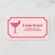 Tarjeta De Descuentos Pink Cocktail Retro Font Wedding Drink Ticket
