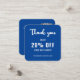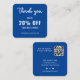 Una tarjeta de descuento minimalista azul y blanca con código QR para que una empresa profesional la utilice como herramienta promocional para desarrollar la lealtad del cliente. Puede cambiar la fuente, el color de la fuente, el tamaño de la fuente, el espaciado entre letras, el color de fondo y el color del gráfico de Agradecimiento utilizando la Herramienta de Diseño. También puede cambiar los íconos de redes sociales para que sean relevantes para su negocio. El diseño elegante moderno y simple es suyo para personalizar como desee.
