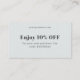 This elegant teal ocean discount card features a minimalist, abstract photo of waves and rocks of the ocean. The classic, dark look is perfect for businesses and products that have a masculine or gender-neutral aesthetic.