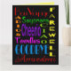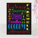 ¡Una magnífica tarjeta de despedida de gran tamaño para que todos firmen para esa persona especial que se va! El diseño presenta una tipografía de colores vivos que incluye expresiones conocidas para "Adiós" en francés, italiano, británico, español, japonés y americano. ¡Adentro está listo para personalizar! ¡Una fantástica tarjeta con mucho espacio para que todos firmen sus buenos deseos!