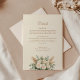 Comparta información importante de los bodas con esta elegante tarjeta de detalles del boda boho, que incluye pasto suave, vegetación exuberante de eucalipto y rosas blancas clásicas. Diseñada en una paleta de colores cálidos verde y beige, esta tarjeta de presentación es perfecta para proporcionar direcciones, alojamiento, detalles de recepción u otras notas especiales a sus huéspedes. Ideal para bodas rústicos, ajardinados, graneros o al aire libre, perfectamente coordinados con invitaciones, guardar las fechas y tarjetas RSVP de nuestra colección Boho Pampas.