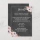 Tarjeta de detalle de boda boho con flores de acuarela rosadas, sobre fondo de pizarra negra.