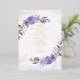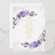 Tarjeta Boda plana con diseño floral púrpura, grabado y polvo de Relieve metalizado.