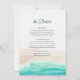 Mejore su experiencia boda con nuestra tarjeta de detalles Boda Tropical Beach and Palm Trees. Esta elegante tarjeta es la adición perfecta a su conjunto de papel boda, que proporciona a los huéspedes información esencial sobre alojamiento, transporte y otros detalles importantes para la celebración de su destino. Con un cautivador ilustracion acuático de una tranquila escena playera adornada con palmeras balanceantes, esta carta marca la pauta para un boda tropical paradisíaco. Ya sea que esté organizando una boda en la playa, una celebración de destino, o simplemente le guste la belleza de los paisajes costeros, esta tarjeta de detalles seguramente hará una impresión memorable a sus invitados. Utilícelo para proporcionarle detalles sobre alojamiento, opciones de transporte, atracciones locales y cualquier otra información importante que le ayudará a disfrutar de su estancia. Póngalo en pareja con la coordinación de artículos de papelería de boda de nuestra colección Tropical Beach and Palm Trees para una apariencia cohesiva y pulida que refleja la belleza y el romanticismo de su día de bodas.