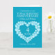 Personalice esta tarjeta de aniversario de bodas de topacio azul aguamarina con el nombre de su pareja y año de matrimonio y mensaje o palabras interiores. El ejemplo dice: Felicitaciones en su aniversario de bodas de topacio Debbie y William 4 años 25 de mayo de 2024 a 2028. Arte y diseño del corazón con efecto de gema de topacio azul por Sarah Trett para www.mylittleeden.com