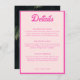 Comparte los detalles de tu evento con estilo con estas tarjetas de detalles de Bat Mitzvah tropicales rosa neon. El diseño presenta hojas de palma verdes y texto personalizado rosa para compartir los detalles de tu evento. Ingresa a la Herramienta de Diseño de Zazzle para hacer ajustes adicionales al texto.