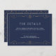 Elegancia vintage ornamentar diseño de marco giratorio en color dorado sobre fondo azul marino editable en color. Patrón Damask con diseño monograma en la parte posterior, moderno, elegante y elegante, perfecto para bodas vintage, boda art deco todo el año. Color de fondo editable para que coincida con los colores del tema boda. Personalizar con cualquier información que quieras que tu invitado sepa. Vea todas las piezas coincidentes de esta colección "Gold Modern Classy boda" a continuación.