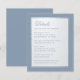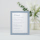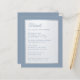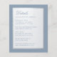 Una tarjeta de detalles de boda de presupuesto muy simple. Tiene un marco rectangular azul polvoriento y plateado falso y texto azul polvoriento sobre fondo blanco. El título Detalles (que se puede cambiar) está escrito en una elegante escritura caligráfica.