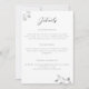 El follaje de eucalipto, dibujado a mano con lápiz de grafito y superpuesto en oro blanco, adorna esta tarjeta de detalles de invitación de boda simple pero sofisticada, elegante y tradicional, aunque chic y moderna. El arte original a lápiz le da un aspecto único y original, elevando este clásico a una versión moderna y refrescante de un diseño de invitación de boda tradicional.