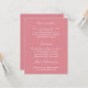 Tarjeta de detalles de boda elegante rosa rubor, por favor personalice la parte frontal de la tarjeta utilizando la plantilla de personalización en línea antes de realizar el pedido, para incluir detalles que sus invitados puedan encontrar útiles en la tarjeta. Una tarjeta de inclusión elegante para ayudar a sus invitados a llegar a su boda frescos y a tiempo.
