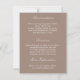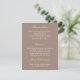 Tarjeta de detalles de boda elegante y con estilo en color taupe, personalice la parte delantera utilizando la plantilla de personalización en línea para incluir detalles que sus invitados puedan encontrar útiles. Si desea ajustar el diseño en la parte delantera de la tarjeta, o agregar cualquier información en la parte trasera de la tarjeta, puede personalizar aún más el diseño a través del botón "Editar usando la herramienta de diseño". Una tarjeta de inclusión elegante para ayudar a sus invitados a llegar a su boda frescos y a tiempo.