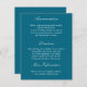 Tarjeta de detalles de boda azul turquesa profundo elegante, por favor personalice la parte delantera utilizando la plantilla de personalización en línea para incluir detalles que sus invitados puedan encontrar útiles. Si desea ajustar el diseño en la parte delantera de la tarjeta, o agregar cualquier información en la parte posterior de la tarjeta, puede personalizar el diseño aún más a través del botón "Editar usando la herramienta de diseño". Una tarjeta de inclusión elegante para ayudar a sus invitados a llegar a su boda frescos y a tiempo.