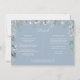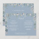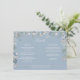 Una tarjeta de información de detalles de boda en cascada floral azul polvo elegante personalizada con tus detalles especiales en tipografía elegante y tus nombres y fecha de boda en el reverso. Diseñada por Thisisnotme