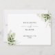 Una elegante tarjeta de información de detalles de boda floral verde personalizada con tus detalles especiales en tipografía elegante y tus nombres y fecha de boda en el reverso. Diseñado por Thisisnotme©